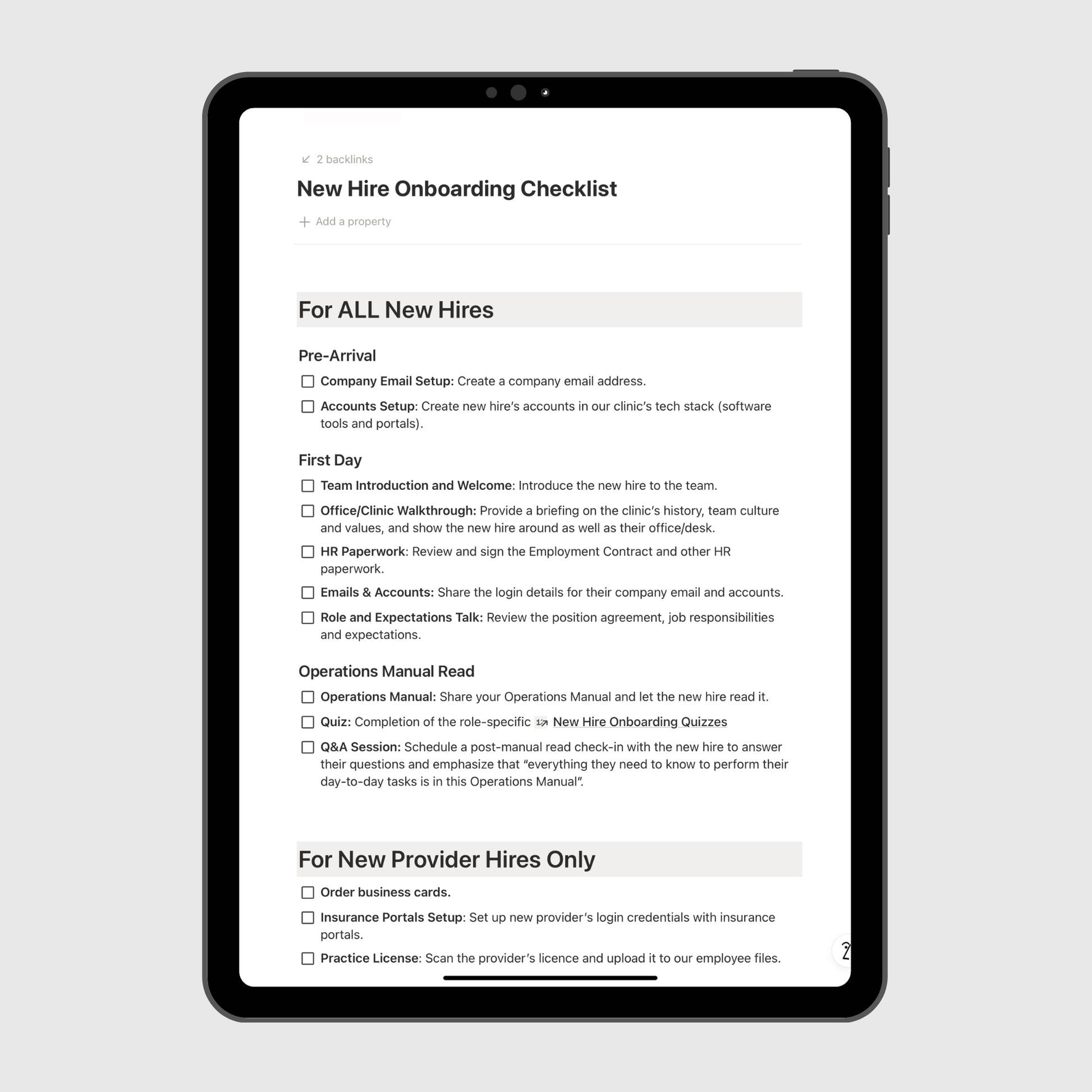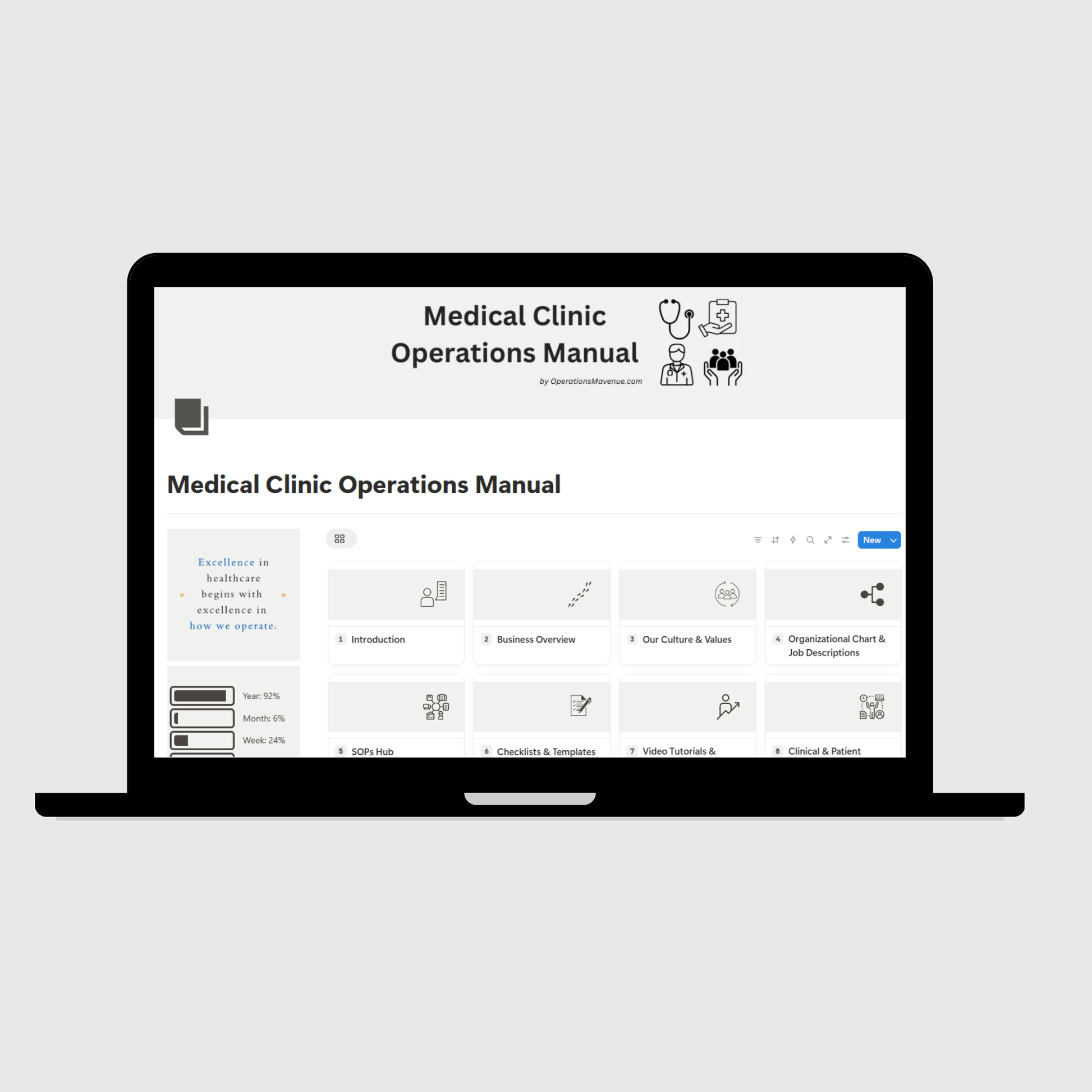 ✨ Your Medical Clinic Operations Manual is a one-stop shop for documenting how your clinic runs. It includes your SOPs, workflows, guidelines, checklists, templates, best practices... It tells your employees: "This is how we do things here".